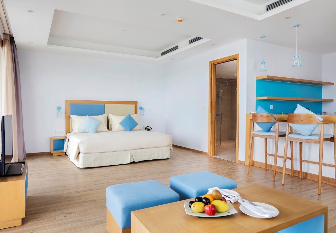 Nếu bạn đi theo nhóm nhỏ hoặc các cặp đôi cần sự riêng tư, phòng Studio Suite là một lựa chọn vừa túi tiền mà vẫn đầy đủ tiện nghi. Phòng thường có view biển hoặc hướng vườn xanh mát, nội thất hiện đại, thoáng đãng và giá “mềm” hơn so với các hạng cao cấp.